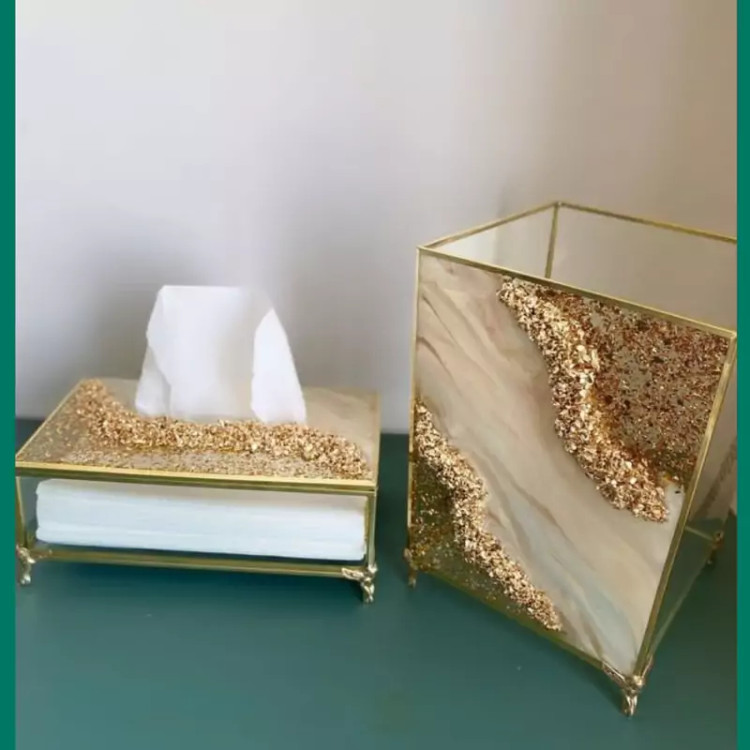 سطل اشغال ودستمال کاغذی شیشه ای رزینی