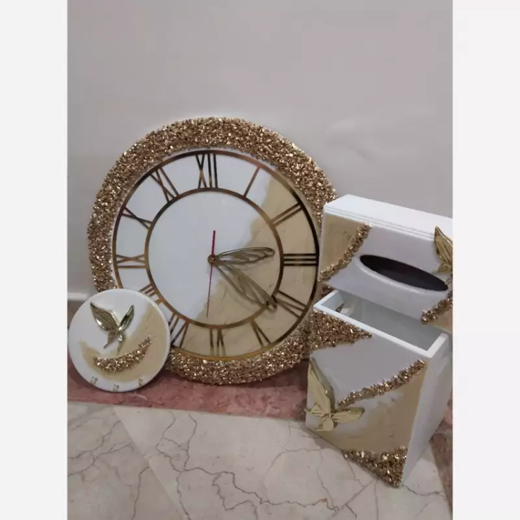 ست ساعت دیواری قطر۵۰وجاکلیدی وسطل وجادستمال کاغذی