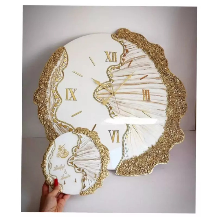 ساعت دیواری رزینی قطر ۶۰ ب همراه جا کلیدی قطر ۲۰ طرح دفرمه