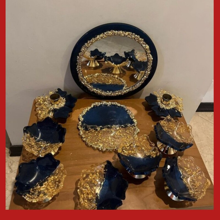 ست هفت سین سرمه ای طلایی جهیزیه عروس
