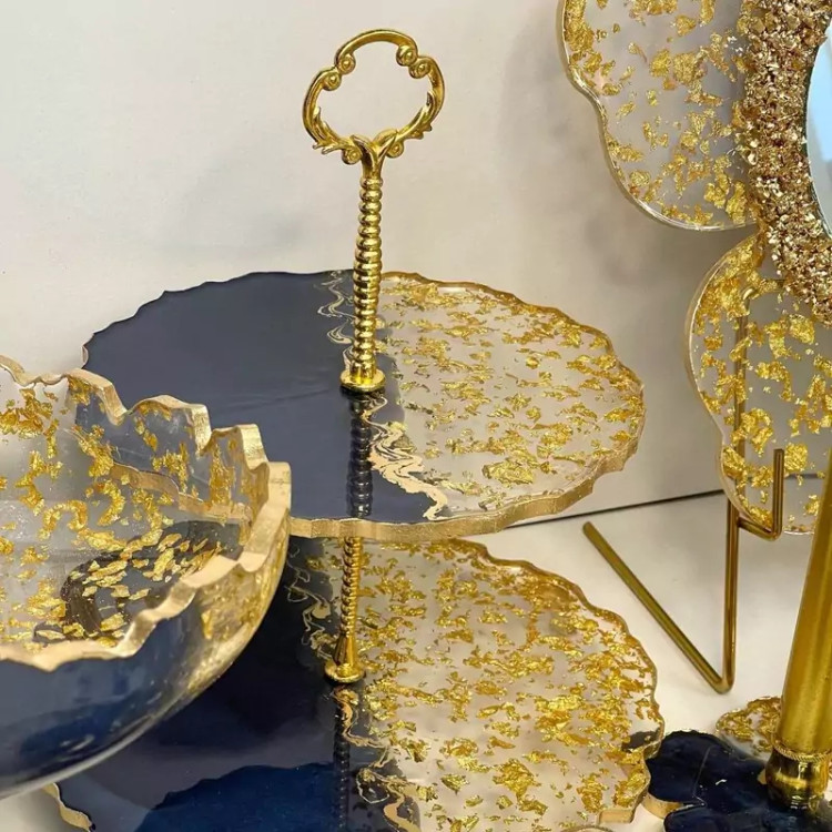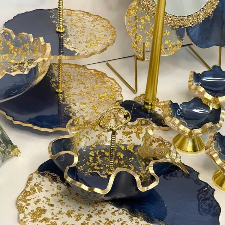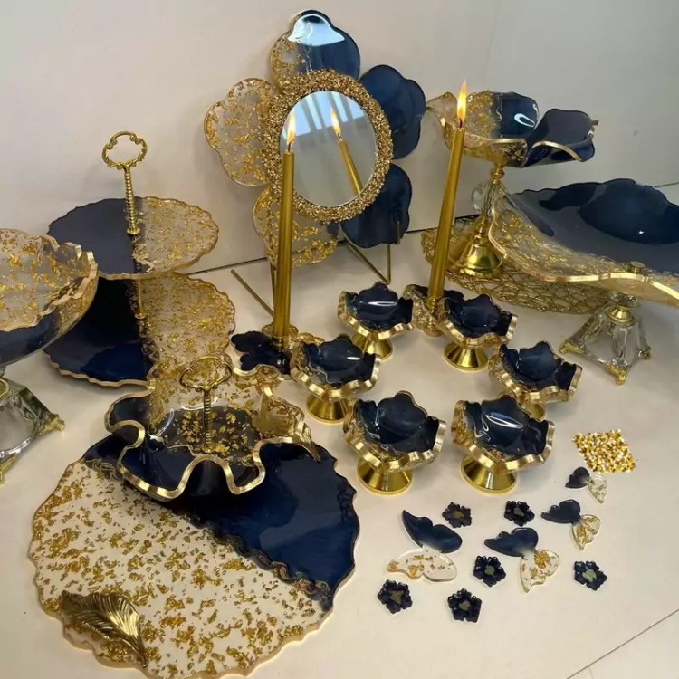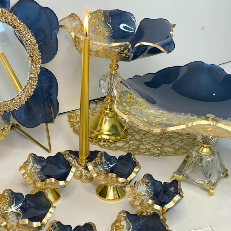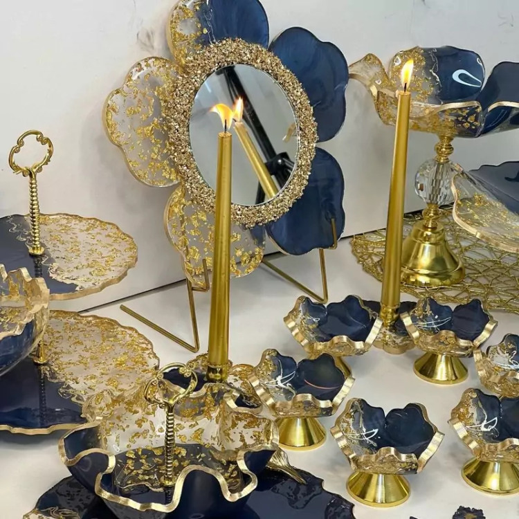 ست پذیرایی رزینی سرمه ای طلایی5 تکه جهیزیه عروس همراه ست کامل هفتسین