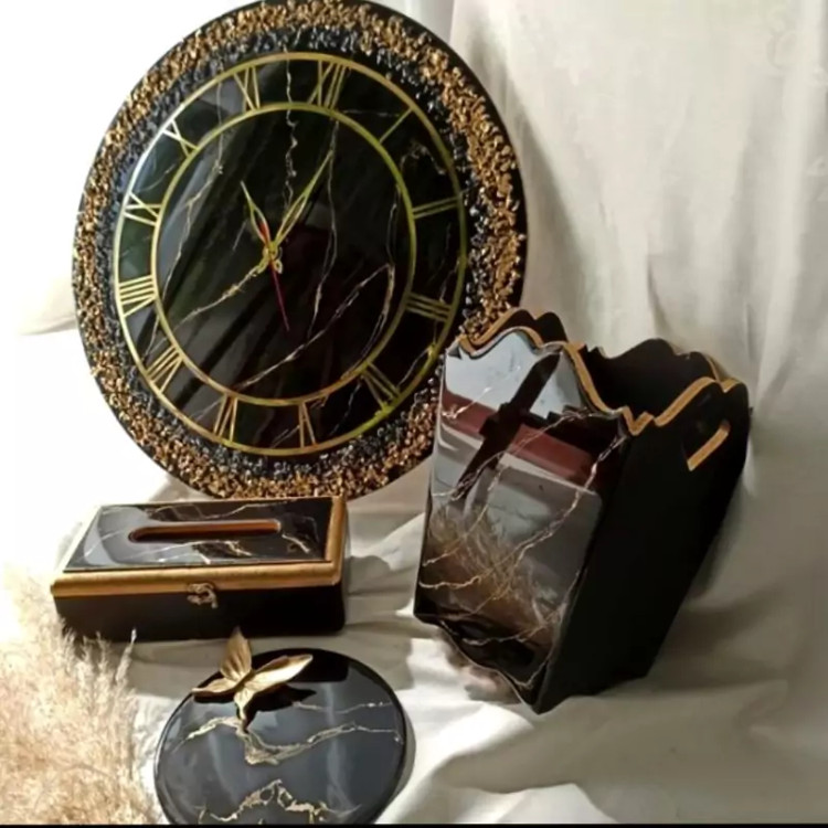 ست چوبی رزینی 4تکه جهیزیه مشکی طلایی