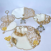 سرویس پذیرایی رزینی 5تکه جهیزیه عروس سفید طلایی