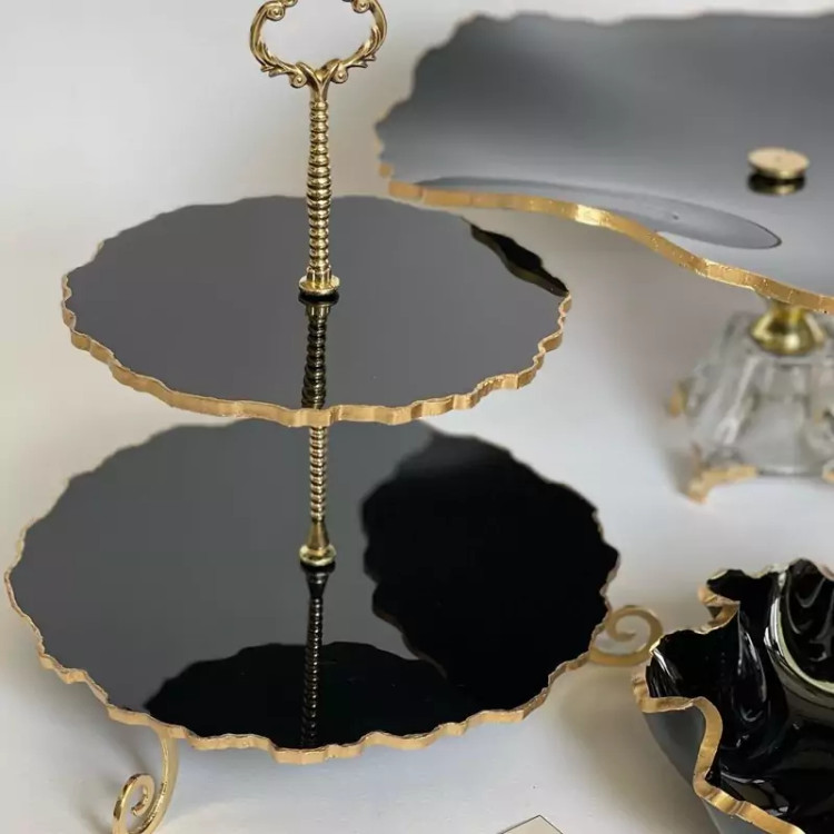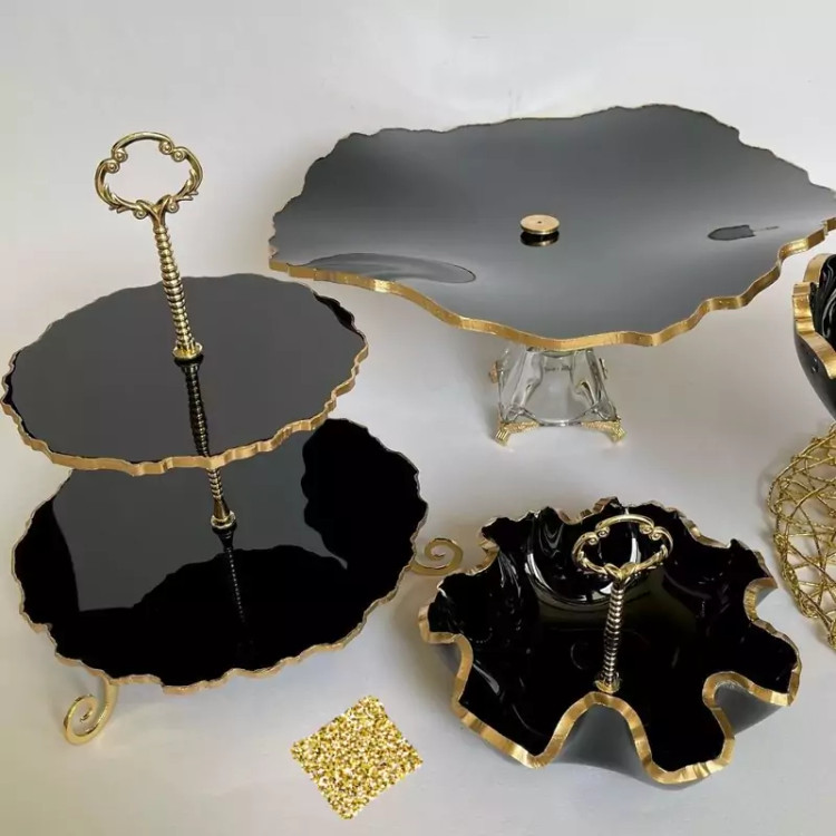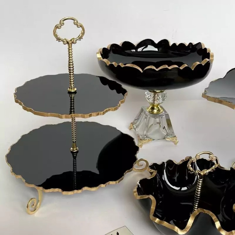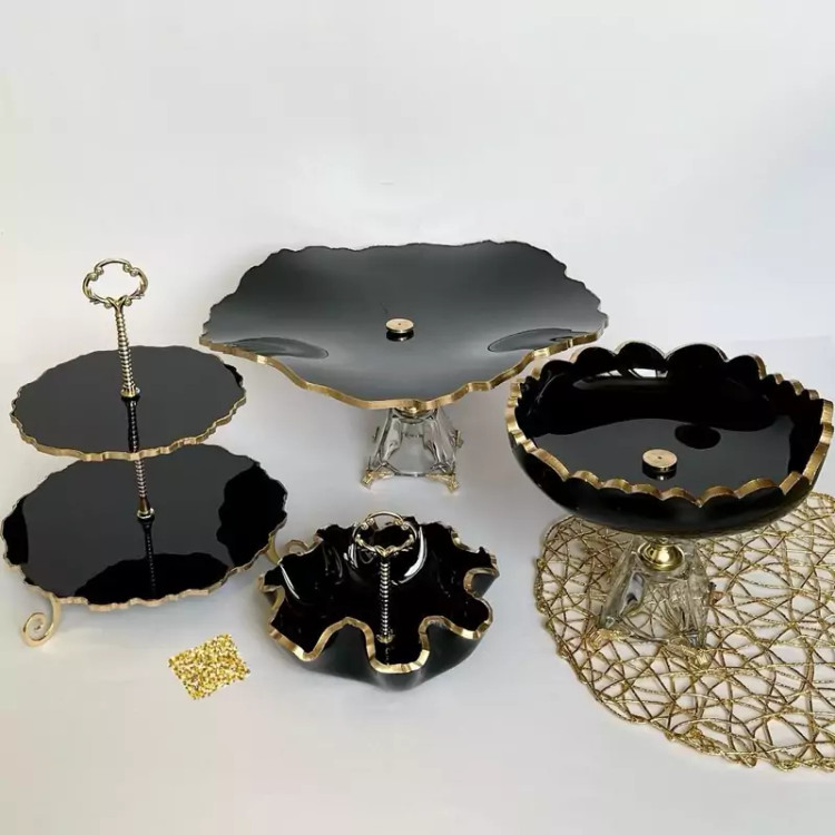 شامل میوهخوری بزرگ قطر ۴۰ ،آجیل خوری ،شکلات خوری و یک عدد شیرینی خوری دو طبقه ابعاد طبقات ۳۰ و ۲۵ سانت میباشد