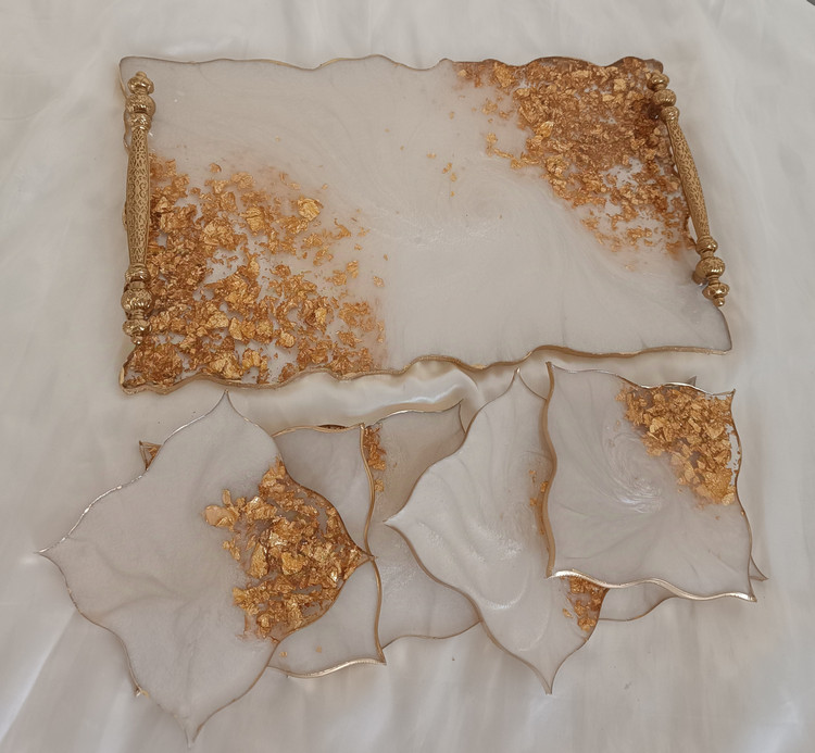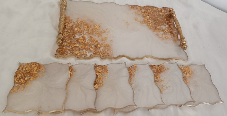 ست رزینی سینی و زیر استکانی 6عددی جهیزیه سینی خواستگاری